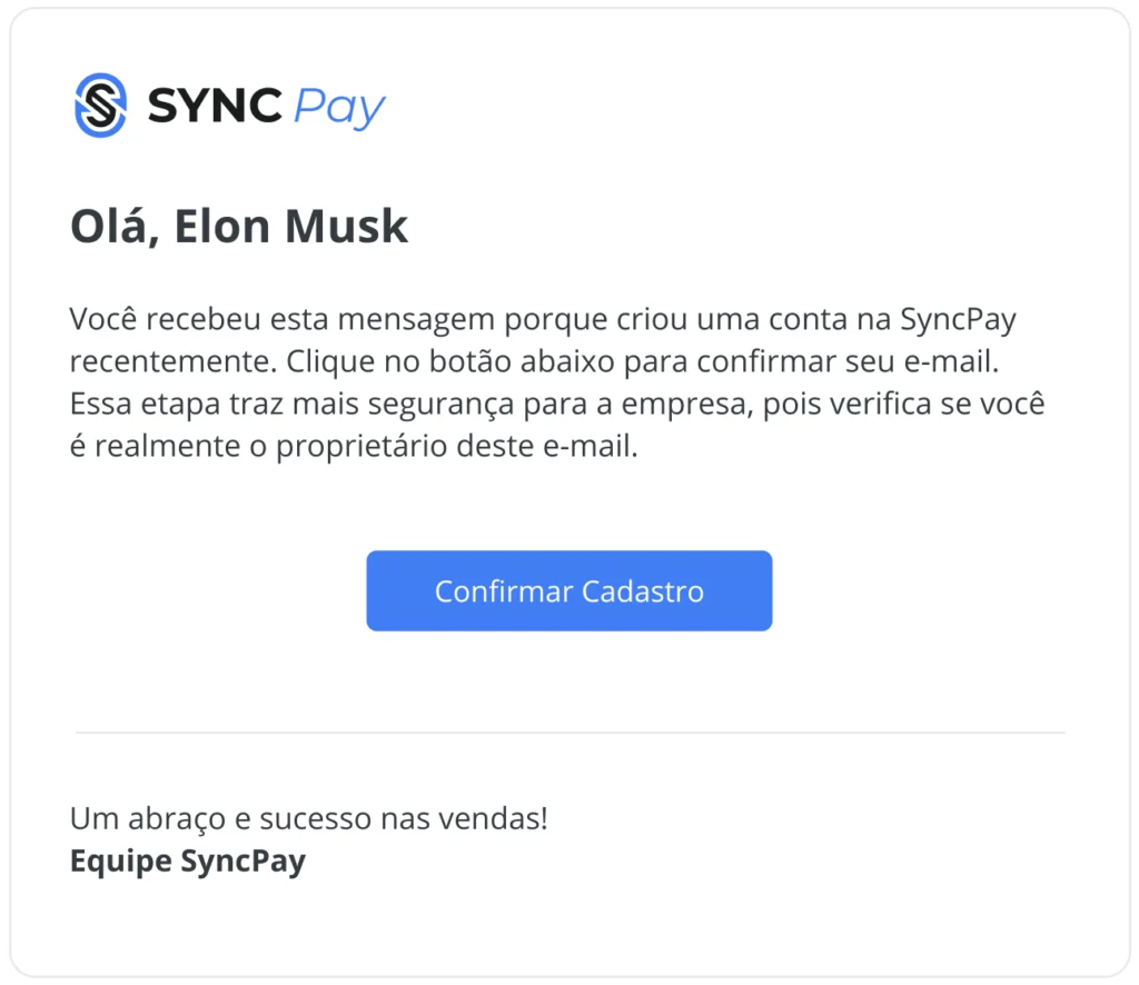 Em seguida, você receberá um e-mail de confirmação. Agora, verifique a sua caixa de entrada e confirme seu e-mail para seguir com o cadastro.